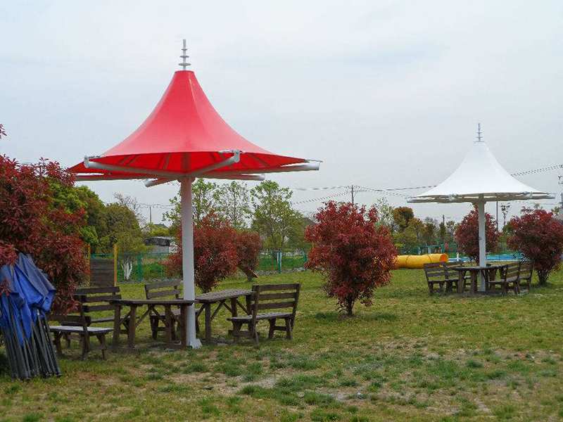 由于膜材料本身特有的顯色性,在夜間彩燈的映射下能形成絢麗繽紛的景觀。不僅為人們提供遮陽避雨的空間。同時,更由于這種生動活潑的造型能給人們帶來時尚、輕松的休閑感受,所以廣受歡迎。